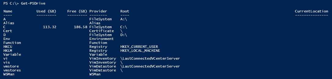 Now we need to examine the PSDrives available to us with Get-PSDrive.