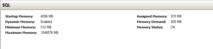 Hyper-V handles memory in a noticeably different way than vSphere does. This has taken me some getting used to but the largest take away is that it does not overcommit memory. Microsoft uses the term Dynamic Memory for their version, and based on my observations that is a good term for it.