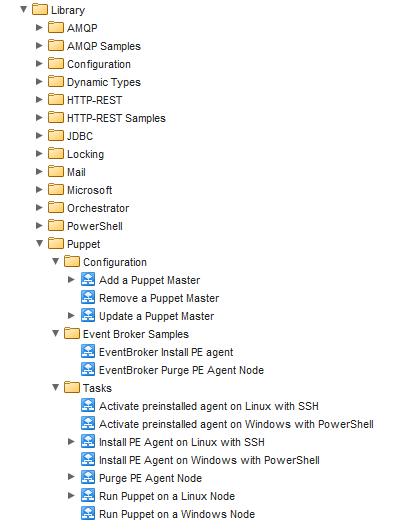 Once you launch the client and login, go to the workflow tab, expand Library and you’ll find a new Puppet section you can expand with a few workflows in it. The ones with the arrow on them are the ones we’ll be looking at.