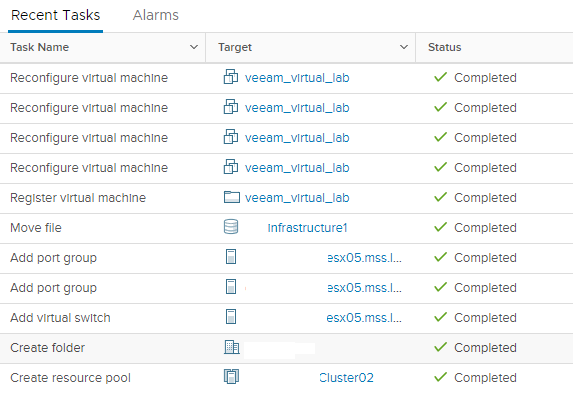 Note: The proxy appliance by default receives the same name as the lab. If you use vCheck, there is a plugin that alerts on VMs whose file location on the datastore doesn’t match the VM name, and spaces in VM names are changed to underscores on the filesystem. If you use this plugin, I suggest avoiding spaces in the VM’s name or adjusting your plugin settings to skip the virtual lab VMs to prevent false positives.