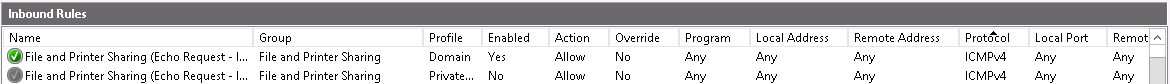 Enable-NetFirewallRule -DisplayName "File and Printer Sharing (Echo Request - ICMPv4-In)"